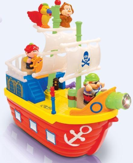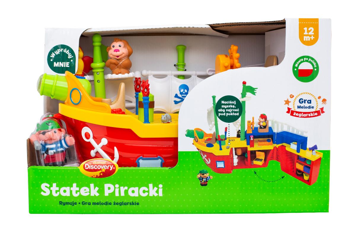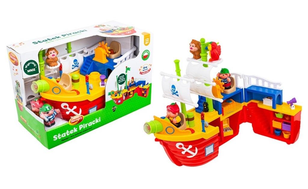Zabawka jest pełna ciekawych niespodzianek, ekscytujących światełek i wypełniona dźwiękami prawie w każdym miejscu. Ster statku wydaje realistyczne dźwięki, a melodyjki są zsynchronizowane z kolorowymi światełkami. Pokład statku jest rozkładany, dzięki czemu dziecko może znaleźć prawdziwy piracki skarb, oraz zapoznać się ze zwyczajami panującymi na statku.