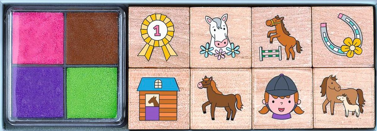 Drewniane stempelki przedstawiające konie na wyścigach to niezwykłe gadżety, które sprawią ogromną radość każdemu maluchowi, w wyjątkowy sposób rozwijają ich kreatywność. W zestawie znajdziemy 8 stempelków: konia w galopie, klacz ze źrebakiem, konia z grzywą, podkowę, konia zwycięzcę, medal, jeźdźca i stajenkę oraz 4 tusze: czerwony, zielony, brązowy i fioletowy. Drewniane stempelki z różnymi motywami są idealne do tworzenia listów, kartek, obrazków i ozdabiania prezentów. Wyobraźnia dziecięca nie zna granic. Na każdym stempelku umieszczona nakładka z motywem przedstawiającym konie na wyścigach. W zestawie znajdziemy: konia w galopie, klacz ze źrebakiem, konia z grzywą, podkowę, konia zwycięzcę, medal, jeźdźca i stajenkę. Zestaw składa się z 8 wzorów najwyższej jakości drewnianych stempelków o wymiarach 3,5 cm x 2 cm x 2 cm. Stempelki odbijają tylko wzór, bez dodatkowej obwódki, co bardzo podnosi ich wartość dekoracyjną. W opakowaniu znajduje się tusz w 4 kolorach: czerwonym, zielonym, brązowym i fioletowym. Wymiary opakowania: 13 cm x 4,5 cm x 4,5 cm. Kategoria wiekowa: 3+. UWAGA! Elementy i tusz, nie nadają się do spożycia! Zalecana zabawa pod nadzorem osoby dorosłej! x