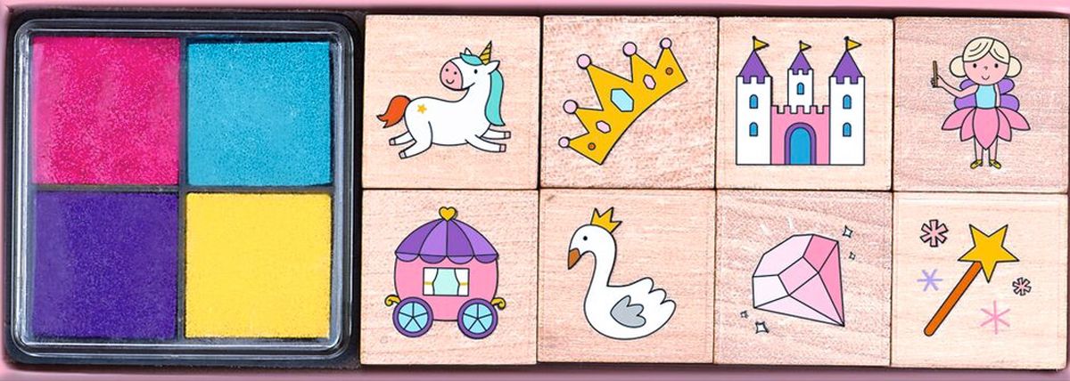 Drewniane stempelki przedstawiające Magiczny Świat Wróżek to niezwykłe gadżety, które sprawią ogromną radość każdemu maluchowi, w wyjątkowy sposób rozwijają ich kreatywność. W zestawie znajdziemy 8 stempelków: jednorożca, karocę, koronę, złotą kaczkę, zamek, magiczny kryształ, wróżkę i magiczną różdżkę oraz 4 tusze: czerwony, niebieski, żółty i fioletowy. Drewniane stempelki z różnymi motywami są idealne do tworzenia listów, kartek, obrazków i ozdabiania prezentów. Wyobraźnia dziecięca nie zna granic. Na każdym stempelku umieszczona nakładka z motywem przedstawiającym Magiczny Świat Wróżek. W zestawie znajdziemy: jednorożca, karocę, koronę, złotą kaczkę, zamek, magiczny kryształ, wróżkę i magiczną różdżkę. Zestaw składa się z 8 wzorów najwyższej jakości drewnianych stempelków o wymiarach 3,5 cm x 2 cm x 2 cm. Stempelki odbijają tylko wzór, bez dodatkowej obwódki, co bardzo podnosi ich wartość dekoracyjną. W opakowaniu znajduje się tusz w 4 kolorach: czerwonym,niebieskim, żółtym i fioletowym. Wymiary opakowania: 13 cm x 4,5 cm x 4,5 cm. Kategoria wiekowa: 3+. UWAGA! Elementy i tusz, nie nadają się do spożycia! Zalecana zabawa pod nadzorem osoby dorosłej! x