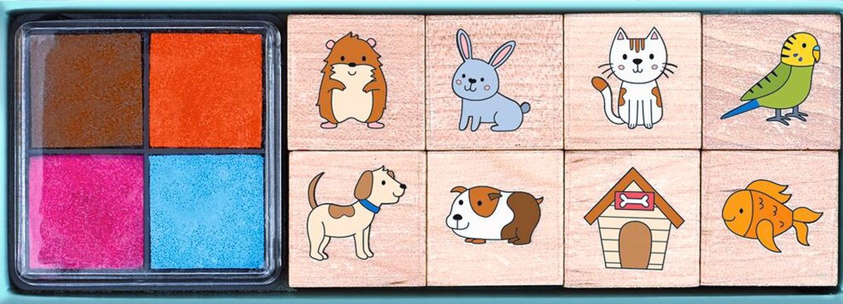 Drewniane stempelki przedstawiające Zwierzęta Domowe to niezwykłe gadżety, które sprawią ogromną radość każdemu maluchowi, w wyjątkowy sposób rozwijają ich kreatywność. W zestawie znajdziemy 8 stempelków: chomika, króliczka, kotka, papugę, świnkę morską, rybkę i pieska oraz jego budę oraz 4 tusze: niebieski, pomarańczowy, brązowy i czerwony. Drewniane stempelki z różnymi motywami są idealne do tworzenia listów, kartek, obrazków i ozdabiania prezentów. Wyobraźnia dziecięca nie zna granic. Na każdym stempelku umieszczona nakładka z motywem przedstawiającym świąt domowych. W zestawie znajdziemy: chomika, króliczka, kotka, papugę, świnkę morską, rybkę i pieska oraz jego budę. Zestaw składa się z 8 wzorów najwyższej jakości drewnianych stempelków o wymiarach 3,5 cm x 2 cm x 2 cm. Stempelki odbijają tylko wzór, bez dodatkowej obwódki, co bardzo podnosi ich wartość dekoracyjną. W opakowaniu znajduje się tusz w 4 kolorach: niebieskim, pomarańczowym, brązowym i czerwonym. Wymiary opakowania: 13 cm x 4,5 cm x 4,5 cm. Kategoria wiekowa: 3+. UWAGA! Elementy i tusz, nie nadają się do spożycia! Zalecana zabawa pod nadzorem osoby dorosłej! x