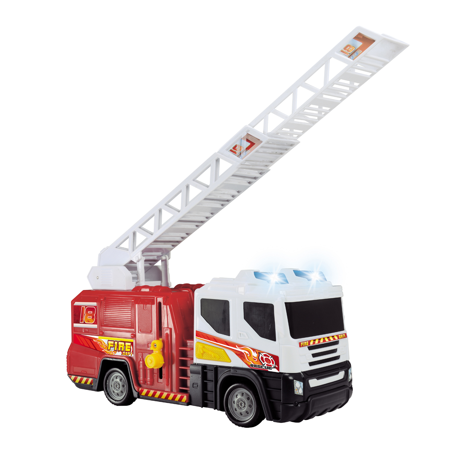 Straż pożarna ze światłem i dźwiękiem, z możliwością podnoszenia i rozkładania drabiny.