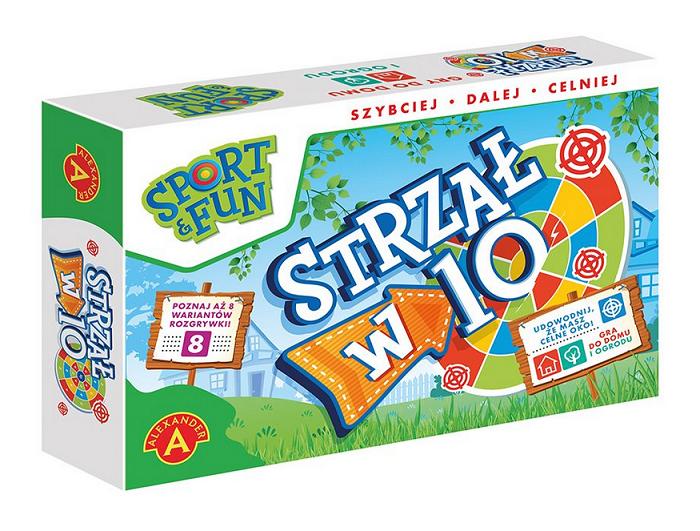 Opis produktuZasady bezpieczeństwaPoznaj ,,Strzał w 10"", doskonałą grę, w której rzucamy woreczkami do punktowanej tarczy, starając się udowodnić rywalom kto ma prawdziwie sokole oko! Rzuty na czas? Rzuty w pełnym pędzie? Rzuty pełne precyzji? Dzięki 8 wersjom zabawy można przetestować wszystkie z nich! Zatem nie trać czasu i ruszaj do gry! Podstawę gry stanowi kolorowa mata z tarczą o wymiarach 80 x 120 cm. Oprócz tarczy w grze znajdziemy krążki - bazy, które urozmaicają rozgrywkę, (w zależności od wariantu) stanowiąc miejsce do dodatkowego zdobycia punktów, bądź wręcz przeciwnie zerując wcześniejsze zdobycze. Bazy wymuszają także bieg, tak żeby rozruszać wszystkie partie ciała. Gra, która nie tylko dostarczy wspaniałej rozrywki, ale także wzmocni kondycję fizyczną i zadba o ogólny rozwój. Zawartość opakowania mata (80 x 120 cm) 1szt, woreczki 12 szt, krążki-bazy 3szt, tablica suchościeralna 1 szt, mazak 1szt, sznurek 1szt, klepsydra 1szt, instrukcja x