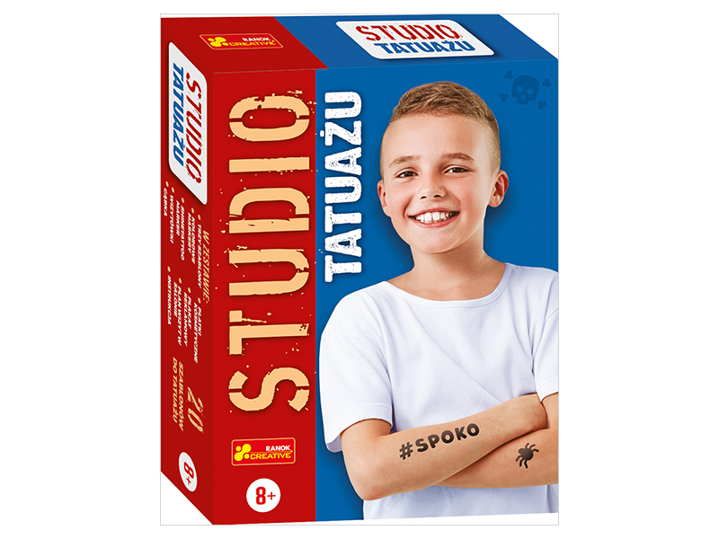 Opis produktuZasady bezpieczeństwaSTUDIO TATUAŻU to gotowy zestaw (START-UP) na szybki kurs tatuażu i małego biznesu. Przygotowaliśmy, aż 20 szablonów do samodzielnego wykonania unikatowych tatuaży, które dodatkowo możecie ozdobić błyszczącym markerem. Zestaw pozwala bawić się samodzielnie lub zaangażować w zabawę przyjaciół lub bliskich. Z tym zestawem nie tylko nauczysz się wykonywać autorskie tatuaże ale możesz rozwinąć własny biznes. Jeżeli nabierzesz wprawy i doświadczenia to możesz zaprosić do swojego STUDIA TATAŻU znajomych, rodziców czy dziadków i wykonać im indywidualny tatuaż. Osoby które zdecydują się na wspólną zabawę znajdą w zestawie dodatkowo plakat reklamujący STUDIO TATUAŻU, wizytówki oraz plan pracy / wizyt. ZESTAW ZAWIERA SZABLONY DO WYKONANIA UNIKATOWYCH TATUAŻY W JĘZYKU POLSKIM TAUAŻE SĄ ZMYWALNE