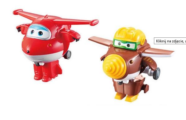 Zestaw dwóch transformujących się figurek, postaci bajki Super Wings. Transformacja z samolotu w robota w 3 krokach.