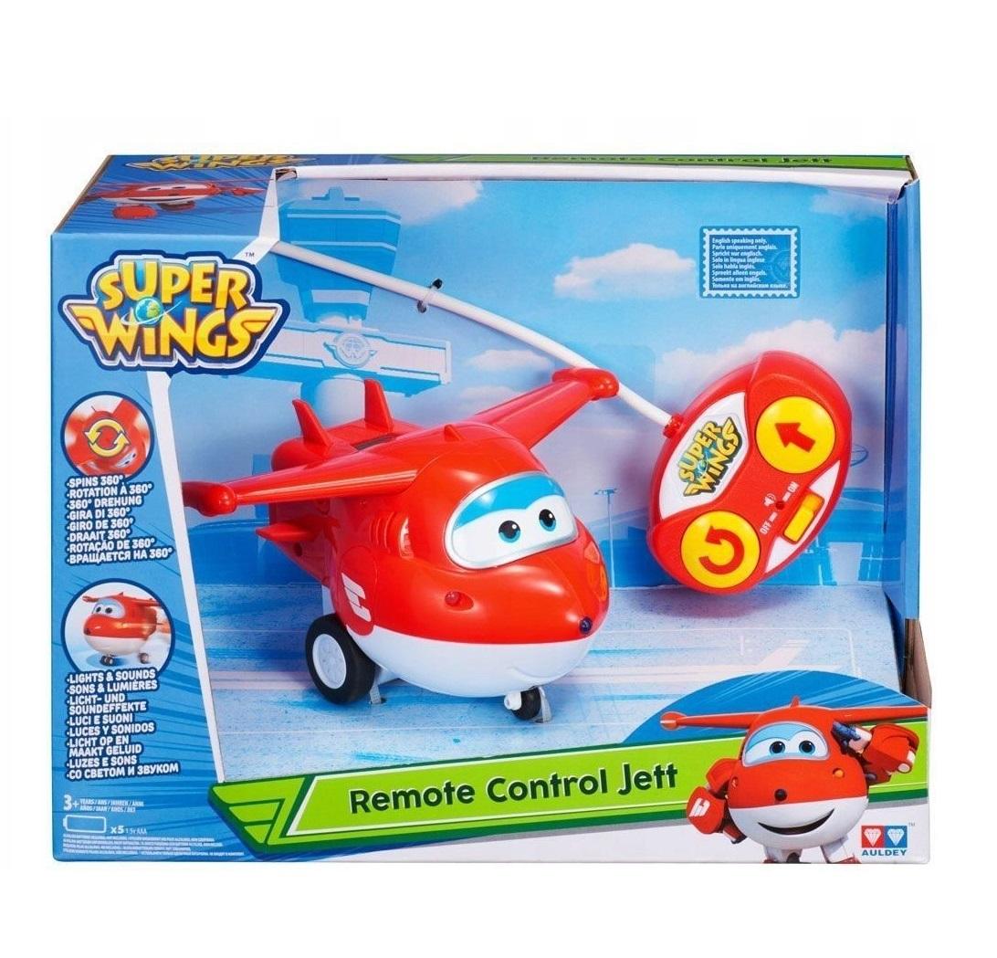 Prosty w obsłudze zdalnie sterowany samolot. Super Wings jeżdżą do przodu i kręcą się wokół własnej osi. Dodatkowo samoloty mają efekty świetlne i dźwiękowe (temat przewodni z serialu). Idealne do zabawy małymi rączkami. W asortymencie znajdziesz samolot Jett i Doonie.