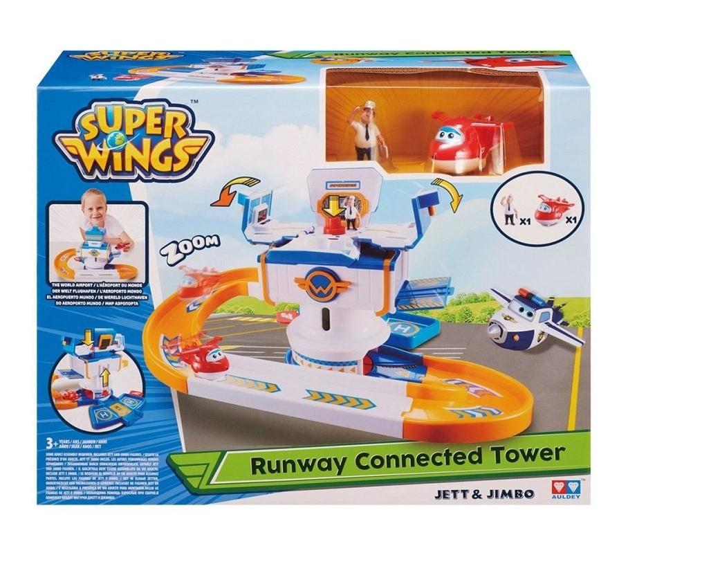 Wieża. Wszystkie misje samolocików Super Wings zaczynają się i kończą na lotnisku. Zestaw zawiera 2 figurki Jett i Jimbo.