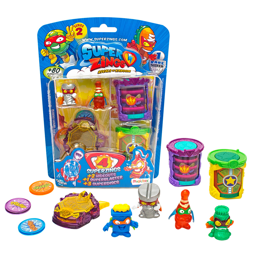 W czwartej serii SuperZings znajduje się 8 wyjątkowych, powietrznych BlasterJets: 4 różne pojazdy, a każdy w dwóch kolorach! Ich zadaniem jest ochrona (lub zaatakowanie) Kaboom City, więc w tym celu zostały wyposażone w specjalne wyrzutnie dysków. Do zebrania są Hero BlasterJets czyli pojazdy SuperBohaterów i Villain BlasterJets czyli te, które należą do Złoczyńców.