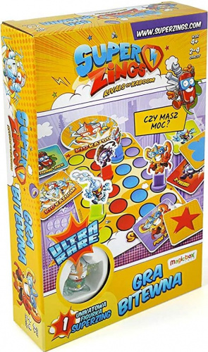 Czy twój bohater ma w sobie odpowiednią ilość mocy, aby pokonać Kid Kazooma? Rozłóż karty mocy na planszy i wybierz jedną z nich. Odłóż ją odwróconą obrazkiem do dołu i wylosuj kartę mocy dla Kid Kazooma. Niech rozpocznie się bitwa! Odwróć karty i sprawdź czy udało ci się pokonać przeciwnika jeżeli tak przesuń się o jedno pole na planszy. Gracz który jako pierwszy dotrze do Kid Kazooma wygrywa! Opakowanie zawiera planszę do gry, karty mocy oraz kolorowe pionki z bohaterami, a także unikatową figurkę Super Zings. Gra dedykowana jest dla dzieci powyżej 4 roku życia. W rozgrywce może wziąć udział od 2 do 4 osób. x