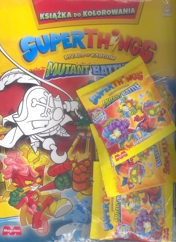 Opis produktuZasady bezpieczeństwaPoznaj nową serię SuperThings Mutant Battle! Fala dziwacznych mutujących mocy ogarnęła ulice Miasta i wzmocniła niektórych SuperThingsów. Szczególną postacią jest Morph, nie do końca udane dzieło Profesora K. Mister King uciekł z więzienia i jedyne, o czym teraz myśli, to przejęcie pełnej kontroli nad Kaboom City. Wszystko wskazuje na to, że ostateczna bitwa jest nieuchronna. Dzięki wyjątkowej książce do kolorowania SuperThings dowiesz się jakie sekrety i nowe moce skrywają bohaterowie kolekcji Mutant Battle. Czeka na Ciebie 36 stron pełnych zadań logicznych, kolorowanek oraz opisów nowych postaci z Kaboom City. Dołącz do przygód swoich ulubionych postaci w tej niesamowitej książce do kolorowania! Do książki dołączone są trzy saszetki SuperThings z najnowszej serii Mutant Battle. x