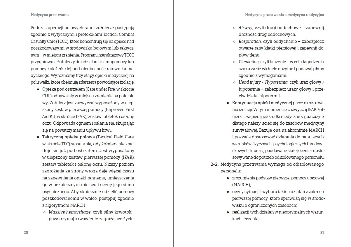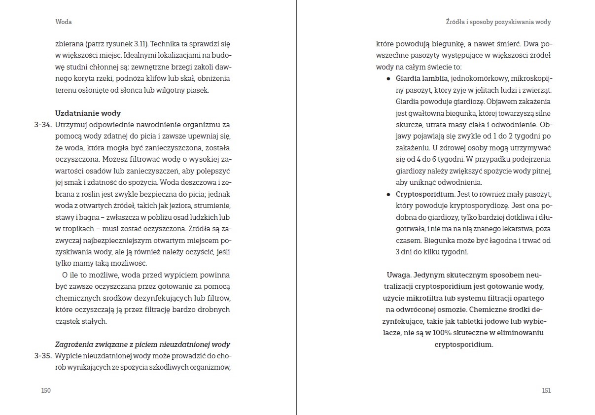 Opis produktuZasady bezpieczeństwaDzięki oficjalnej instrukcji Armii Amerykańskiej dowiesz się, jak przetrwać we wszelkiego rodzaju ekstremalnych, zagrażających życiu warunkach. Te sprawdzone w praktyce strategie i techniki są wykorzystywane w szkoleniach żołnierzy. Przewodnik porusza m. in. takie tematy, jak: psychologia przetrwania, podstawowa medycyna przetrwania, pozyskiwanie żywności i wody, rozpalanie ognia i przygotowywanie schronienia, tworzenie broni i narzędzi, znajdowanie kierunku i nawigacja. To skarbnica praktycznej wiedzy nie tylko dla żołnierzy, wędrowców i turystów, ale i wszystkich, którzy chcą poradzić sobie w czasie niebezpieczeństwa. Jedyna książka, której potrzebujesz, by przetrwać. x