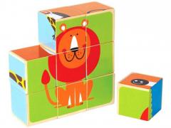 Te 9-elementowe puzzle będą wyzwaniem dla dziecka do ułożenia sześciu podobnych zwierząt. Ale nie zawsze będzie to kwadrat 3x3: żyrafa jest wysoka, aligator długi. Zacznij od odwrócenia klocków, tak aby widzieć 9 klocków w tym samym kolorze.