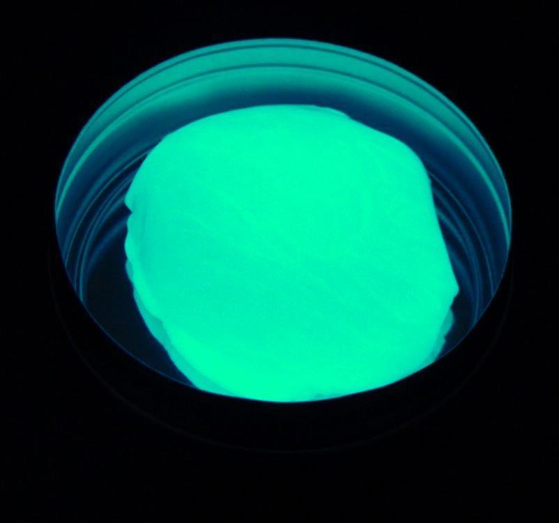 Wokół zobaczycie latające elektrony, które promieniują chłodnym błękitno-zielonym blaskiem. Pozaziemski turkusowy kolor świeci przez całą noc. Proszę przygasić światła i delektować się tym hipnotyzującym zjawiskiem. Kolejny bardzo świecący gatunek. Wyobraźcie sobie plastelinę, która skaczę, rozciąga się i rozrywa i ...świeci. Mlecznie biała w dzień, jej odblask pojawia się kiedy zaczyna się ściemniać. Ale to nie ściema! Możesz użyć naszego ultrafioletowego breloczka aby napisać na plastelinie wiadomość, lub stworzyć specjalny fosforyzujący dizajn. Po wystawieniu na światło (najlepiej najjaśniejsze) kolory świecą godzinami. Stwórz swoje własne triki ze świecącą plasteliną! Wyprodukowana w USA, markowa i niewysychająca masa plastyczna wprowadzająca w osłupienie zarówno dużych jak i małych. Szereg nietypowych właściwości sprawia, że plastelina stanowi niezapomnianą edukacyjną zabawkę dla dziecka, nowatorski gadżet dla nastolatka czy też antystres dla dorosłej osoby. Oto niektóre z jej właściwości: skacze jak piłeczka, rozciąga się jak guma do żucia, rozrywa się jak papier, rozbija się jak porcelana. A niektóre: dają się rysować światłem, świecą, przyciągają się do magnesu.Świetny prezent do domu, pracy lub do szkoły. Doskonałe rezultaty przy rehabilitacji. Nie tłuści, nie brudzi rąk, nie wysycha. Wyprodukowany w USA.