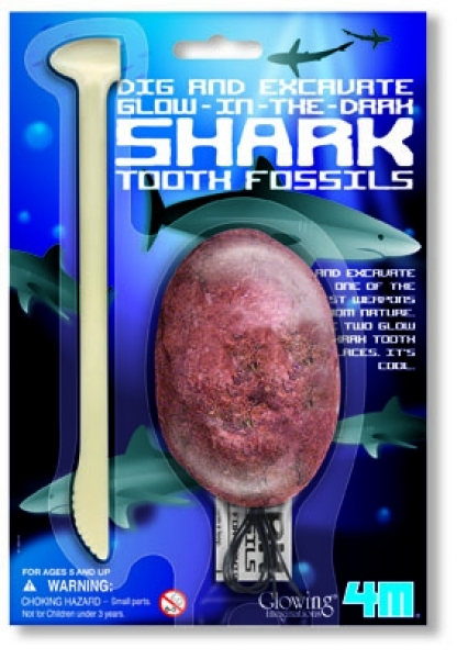 Tajemnicza zawartość!!! W bloku gipsowym znajdują się... świecące w ciemności zęby rekina. Wydobądź je za pomocą specjalnego młoteczka, jak przystało na prawdziwego archeologa! W zestawie znajduje się również rzemyk, za pomocą któego, możesz stworzyć oryginalne wisiorki.