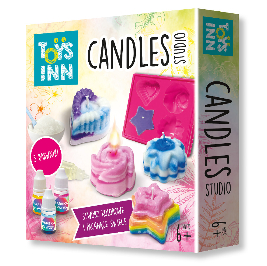 Opis produktuZasady bezpieczeństwaZestaw Modeling Candle pozwala na stworzenie własnych pachnących, kolorowych świec. Zestaw zawiera: woskową bazę, foremkę, farbki w 3 kolorach, aromat karmelowy, knot, instrukcję. Produkt przeznaczony dla dzieci w wieku 6+ x