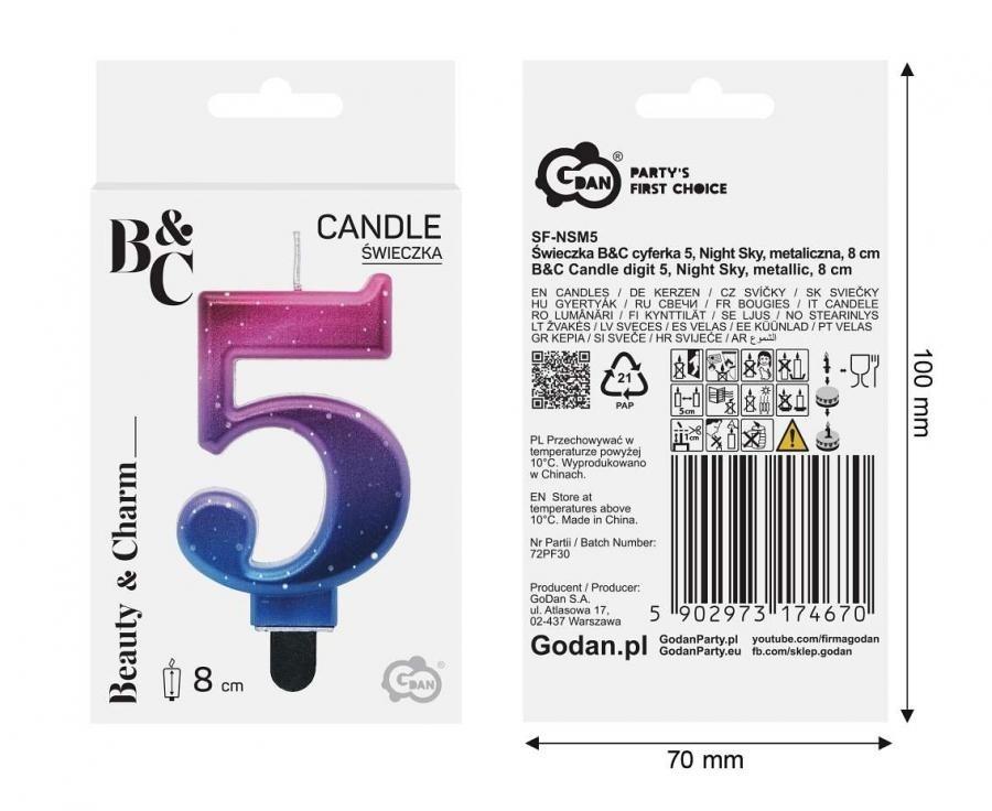 Świeczka Cyferka 5, metaliczna Night Sky, Beauty&Charm