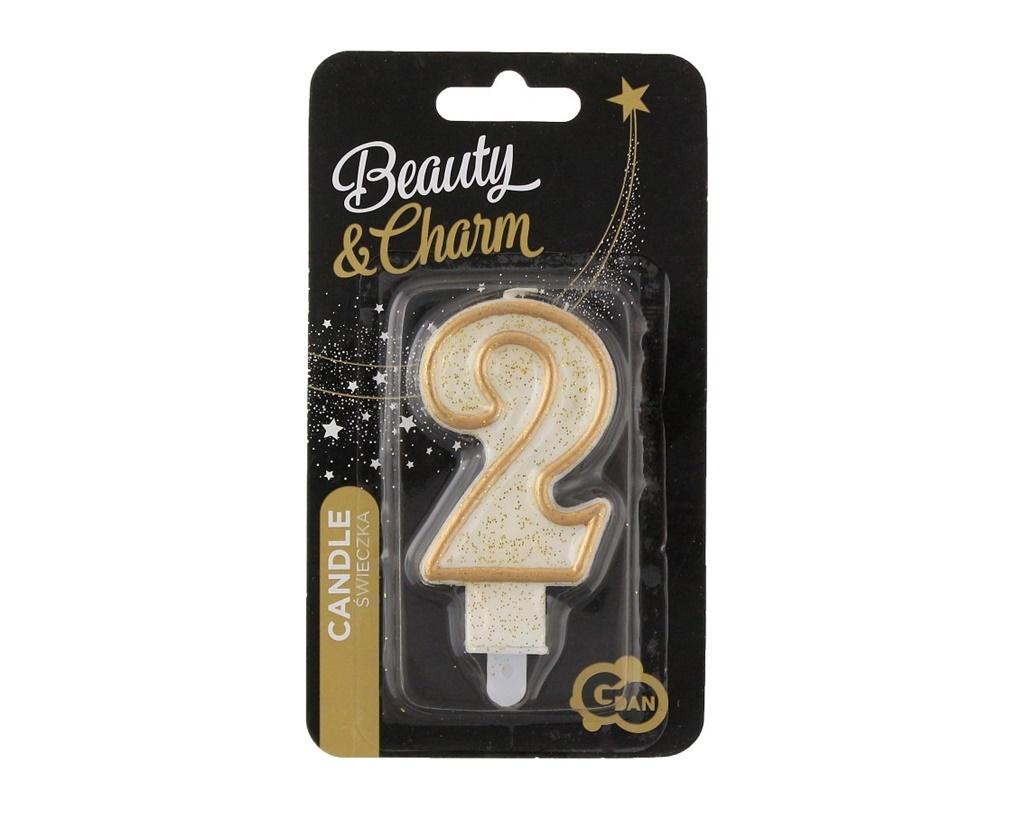 Świeczka CYFRA 2 urodziny, złoty kontur