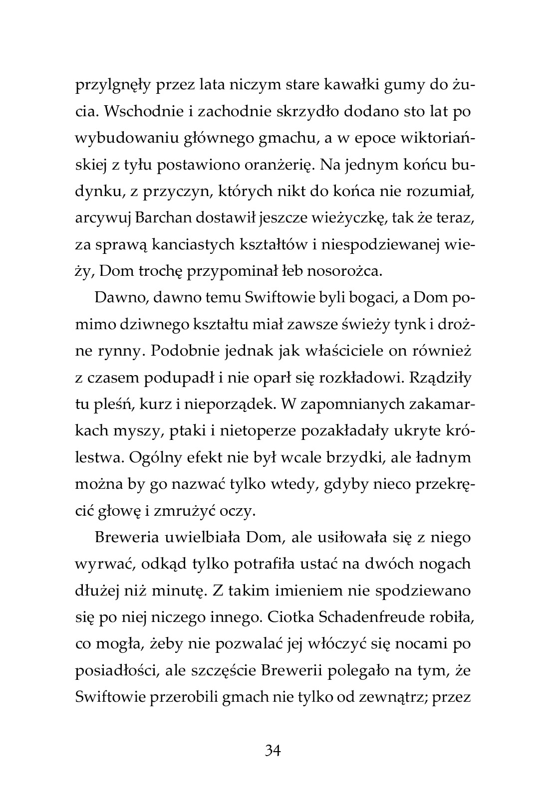 Breweria Swift jest specjalistką od awantur i wybryków, znawczynią wszystkich tajemnych przejść i zakamarków i właśnie szykuje się do wielkiego zjazdu rodzinnego. Tego dnia jak co roku wszyscy Swiftowie będą poszukiwać dawno zaginionego skarbu prawuja Zdrożnego. Tym razem jednak dzieje się coś nieoczekiwanego - ktoś zrzuca ze schodów ciotkę Schadenfreude! Recenzje:✖ Opinia niepotwierdzona zakupem