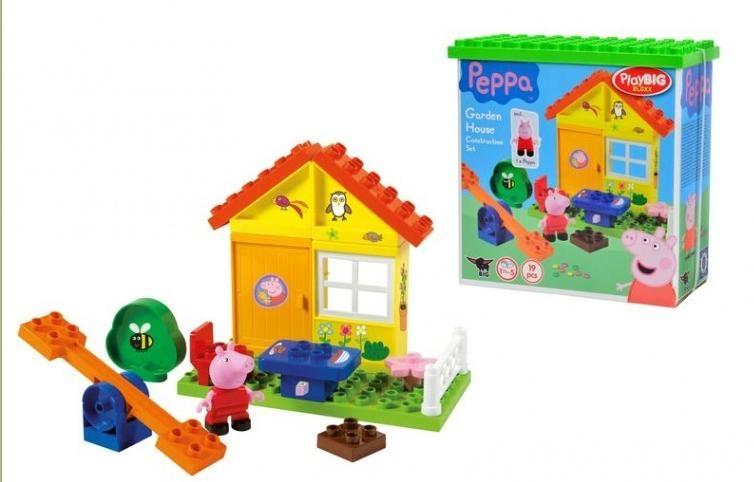 Kolorowe, wysokiej jakości klocki na licencji Świnka Peppa, zamknięte w praktycznym pudełku, w zestawie figurka Peppy.