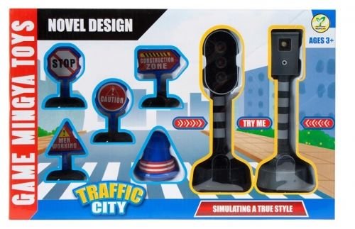 Zestaw Znaków Drogowych od MEGA CREATIVE to doskonała zabawa dla początkujących kierowców. Zabawa resorakami w połączeniu ze znakami zapewni każdemu dziecku mnóstwo frajdy! W zestawie znajduje się sygnalizator świetlny, radar, słupek oraz znaki. Sygnalizator zmienia kolory dzięki czemu Twoja pociecha poczuję się jak przed prawdziwą sygnalizacją świetlną! Radar posiada efekty dźwiękowe oraz świetlne. Wszystkie elementy wykonano z plastiku. Przeznaczone dla dzieci w wieku: 3+. Wymaga zasilania 2 bateriami AG13 - załączonymi do zestawu. Wymiary opakowania(dł.x wys.x gł.) [cm]: 32x21x7.