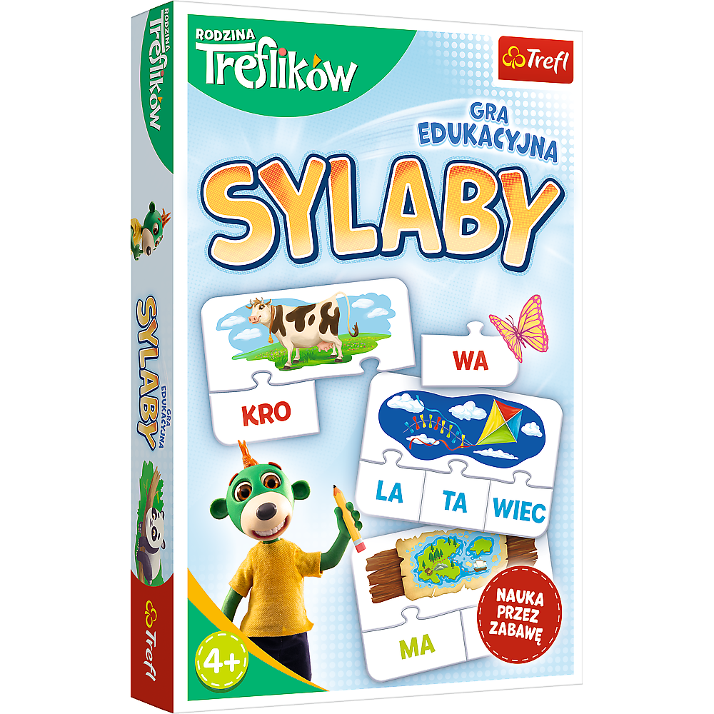Opis produktuZasady bezpieczeństwa"Sylaby" to układanka edukacyjna, która poprzez zabawę wprowadza Wasze dziecko w świat sylabizowania. Gra w prosty sposób pomaga dziecku opanować sztukę dzielenia słów na sylaby i wspomaga naukę czytania. Podczas wesołej zabawy z ulubionymi bohaterami bajki "Rodzina Treflików" dzieci ćwiczą zdolność sylabizowania, rozwijają pamięć wzrokową oraz poszerzają zasób słownictwa. x