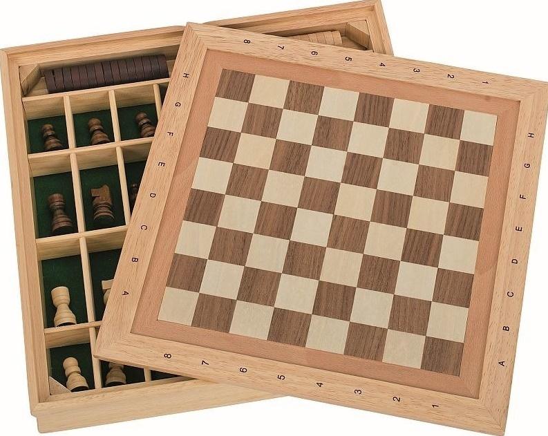Zestaw trzech klasycznych gier w drewnianym pudełku będzie wspaniałym uzupełnieniem kolekcji. Zestaw zawiera trzy najpopularniejsze gry planszowe. Grają w nie miliony
