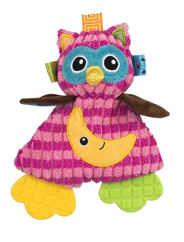 Ola to nocny marek. Jej piórka szeleszczą ekscytujące opowieści, metki czarują zróżnicowaną fakturą, a wewnętrzna część skrzydełek, barwami wieczornego nieba. Ola lubi kłaść się nocą na ziemi, słuchać szumu drzew i obserwować gwiazdy. Jej nóżki pełnią funkcję gryzaków, więc przyniosą ulgę ząbkującemu maluchowi.