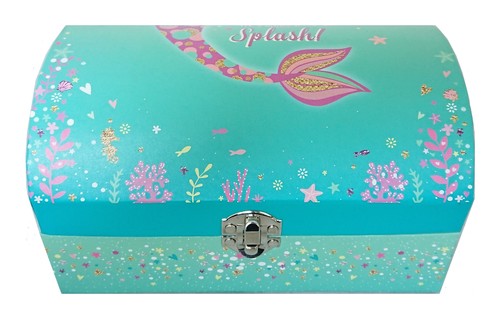 Kartonowa zamykana szkatułka z lusterkiem na wieczku. W zestawie także pamiętnik, temperówka, gumka do ścierania i dwa ołówki