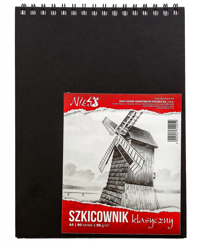 Klasyczny szkicownik A4 na spirali. Gramatura papieru 98g/m2.