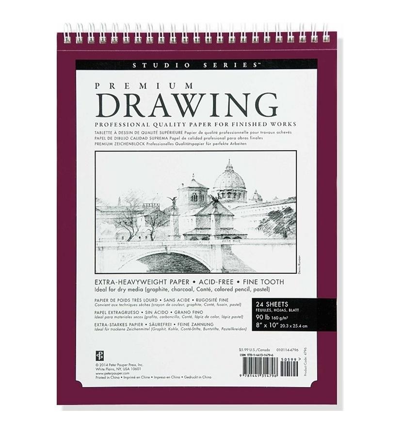 Szkicownik na spirali Mały Premium, którego papier nadaje się do malowania tuszem, ołówkiem, węglem drzewnym, pastelami czy kredą. Kartki z mikroperforacją dają się łatwo wyrywać. Spirala którą spięte są kartki pozwala na łatwe przewracanie kolejnych stron. Mały format 20,3x25,4 cm. 24 kartek papieru o gramaturze 160.