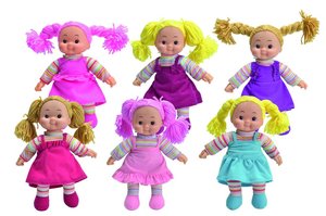 Szmaciana przytulanka z pyzata buzią będzie najlepszą przyjaciółką twojego dziecka. Lalka dostępna w wielu kolorach i w różnych ubrankach. Produkt przeznaczony dla dzieci od 3 roku życia.Rozmiar: 40 cm
