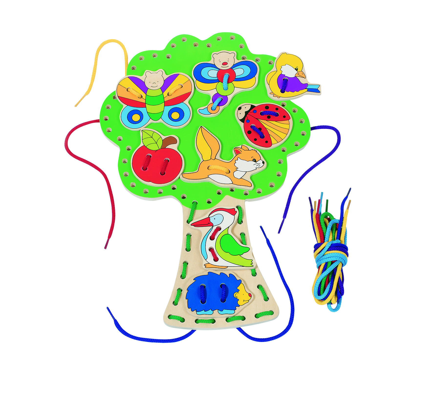 Kolorowe drzewko ze sznurkami do przeplatania.