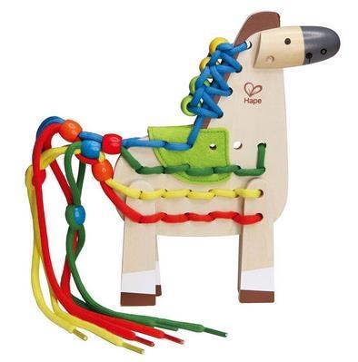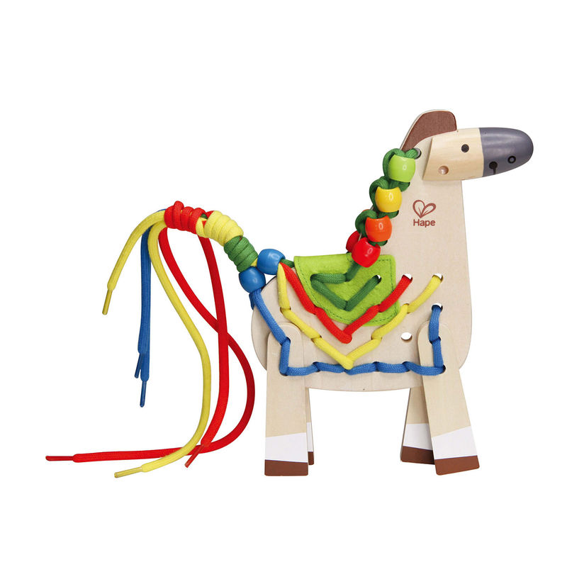 Ogon i grzywa ze sznurka pozwalają dostosować kolory wedle uznania i potrzeb. Nazwij kolory każdej sznurówki. Policz otwory w koniku.