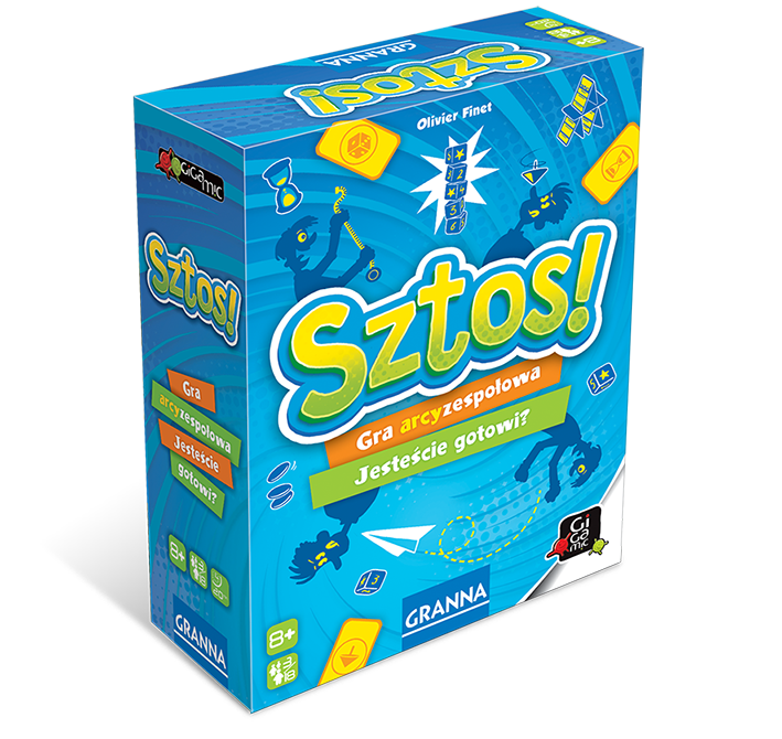 Opis produktuZasady bezpieczeństwaTo szalona gra imprezowa w której uczestnicy podzieleni na 3 zespoły wykonują przeróżne konkurencje wykorzystując zawarte w pudełku akcesoria. Zmierzycie się ze sobą sprawdzając swoją wiedzę, zręczność, sprawność fizyczną i spryt. W pudełku znajdziecie, notatniki, ołówki, klepsydry, miarki, karto, kości, znaczniki wszystko to i wiele więcej wykorzystacie w 150 szalonych zadaniach. Wybierzcie najlepszych reprezentantów do obecnej konkurencji i wspólnie osiągnijcie wygraną. x
