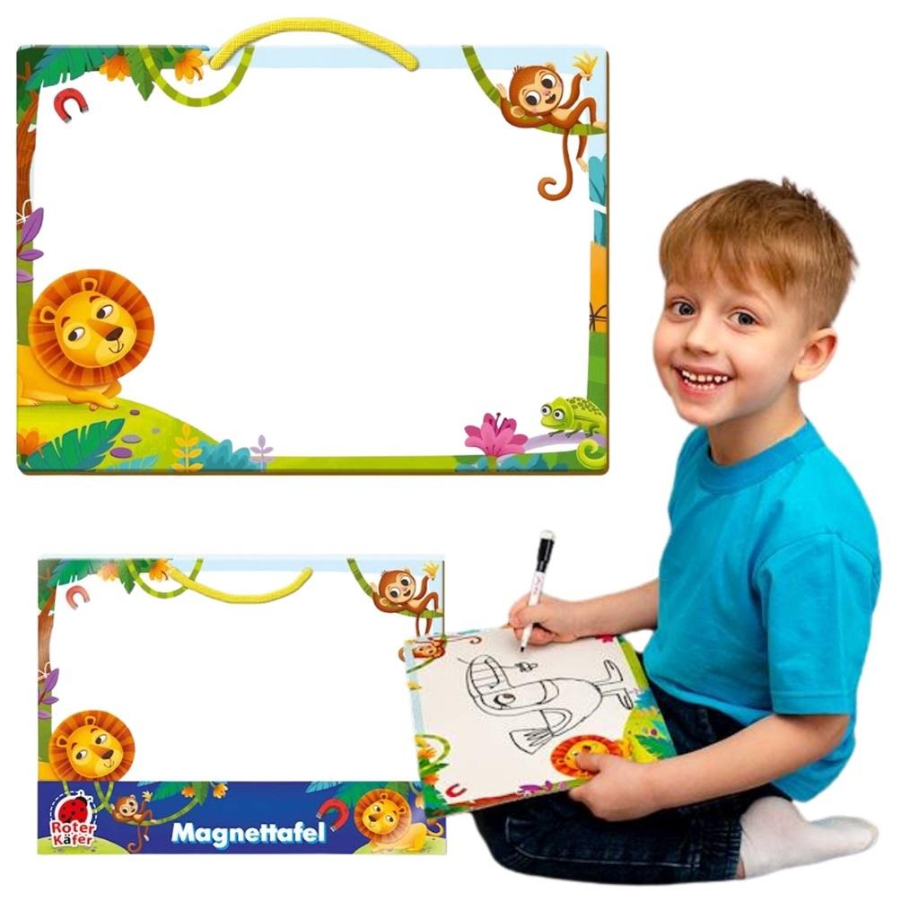 To idealne miejsce do rozwijania wyobraźni, zdolności artystycznych oraz do wyrażania kreatywności. Dziecko może wybierać magnesy przedstawiające różne zwierzęta, układając własne scenki. Zestaw zawiera markery - czarny, czerwony, niebieski oraz sznurek do zawieszenia, ułatwiając pisanie oraz rysowanie.
