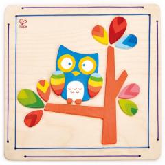 Pomaluj sówkę używając sześciu kolorów i wyszyj ramkę dokoła kolorowymi nitkami.
