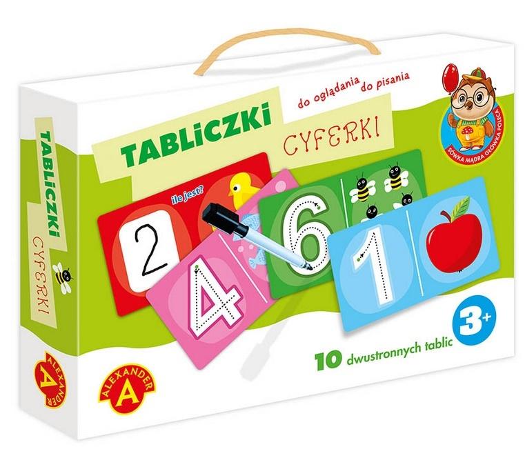 Opis produktuZasady bezpieczeństwaZabawka składa się foliowanych tabliczek wykonanych z grubej i sztywnej tektury. Tabliczki przedstawiają cyfry oraz obrazki ilustrujące wartość prezentowanej cyfry. Dzięki zaznaczonym śladom maluszek może wykonywać już pierwsze próby odwzorowania cyfr. Z drugiej strony znajduje się białe pole, w którym malec może ćwiczyć już samodzielne wpisywanie. Zawartość opakowania Dwustronne tabliczki - 10 sztuk, Pisak z końcówką do ścierania. x