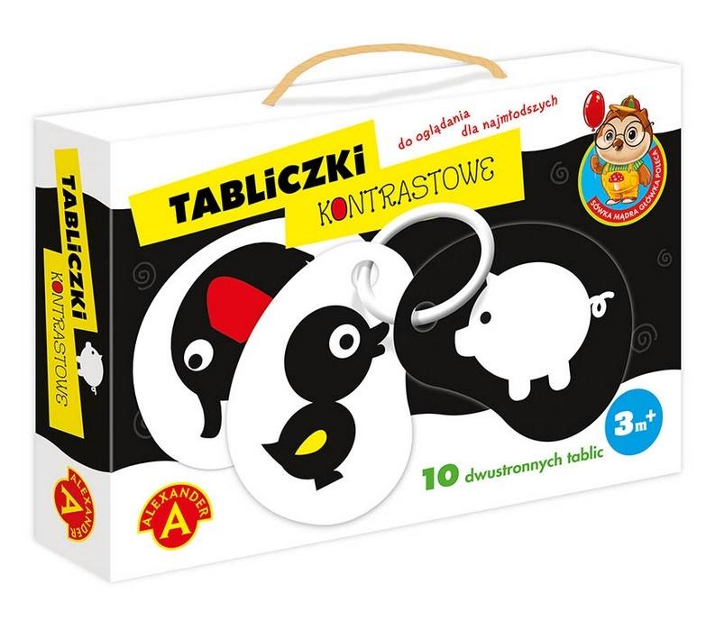Opis produktuZasady bezpieczeństwaZabawka jest zbiorem ilustracji dla najmłodszych dzieci (od 3 miesiąca). Demonstrując dziecku obrazki oparte o proste kształty i zdecydowane kontrasty rodzice wspomagają rozwój percepcji dziecka, związanej w tym wieku z określaniem granic obiektu i postrzeganiem kontrastowych barw. Zabawa doskonale pogłębia kontakt dziecka z rodzicem. Zawartość opakowania 10 dwustronnie ilustrowanych tablic x