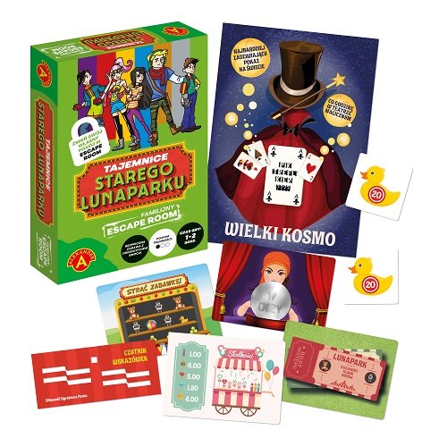 Kupując ten zestaw trafiacie do starego lunaparku, gdzie czeka na Was nie lada gratka! Festyn i gra terenowa ogłoszona przez Dyrektora Parku. Nagrodą jest wstęp na okolicznościowy bankiet pełen arcymistrzów iluzji, tajemniczych wróżek i wspaniałych akrobatów. Tylko że ten lunapark skrywa niejedną tajemnicę, którą będziecie musieli rozgryźć...