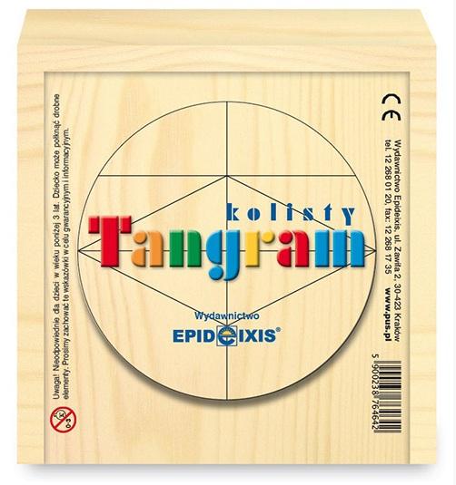 Tangram kolisty jest jedną z form klasycznej, liczącej sobie ponad 3 tys. lat układanki logicznej, wywodzącej się z Chin. Kształt podstawowy stanowi tu koło podzielone na 10 części, wśród których znajdują się 4 trójkąty i 6 wycinków koła. Można z nich tworzyć różne wzory. Prezentujemy kilkanaście możliwych ułożeń przedstawiających zwierzęta, rośliny, postaci ludzkie czy znane wszystkim przedmioty.