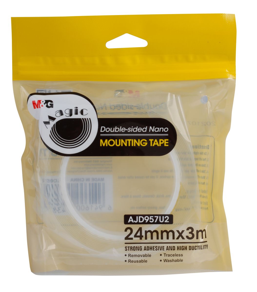 Opis produktuZasady bezpieczeństwaPrzezroczysta, dwustronnie klejąca taśma żelowa Nano, zapewniająca bardzo mocną przyczepność i wielokrotne użycie.