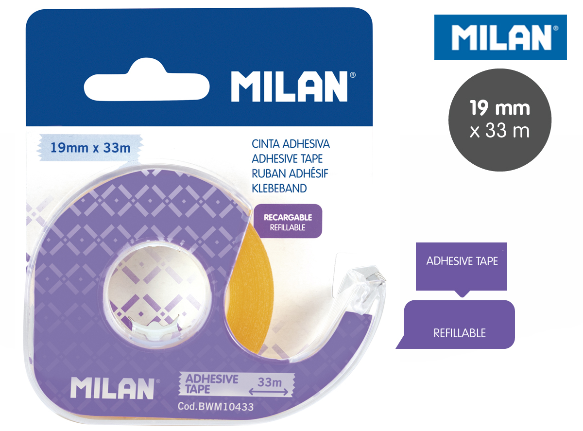 Taśma samoprzylepna z dyspenserem 19mm x 33m MILAN