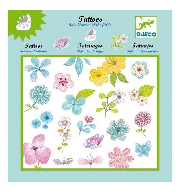 Zestaw tatuaży kwiatki. Zestaw składa się z 2 arkuszy po 23 tatuaże. Tatuaże z łatwością można przenieść na skórę. Przetestowane dermatologicznie.Wiek: 4 - 12 lat. Wielkość opakowania: 21,5x23 cm