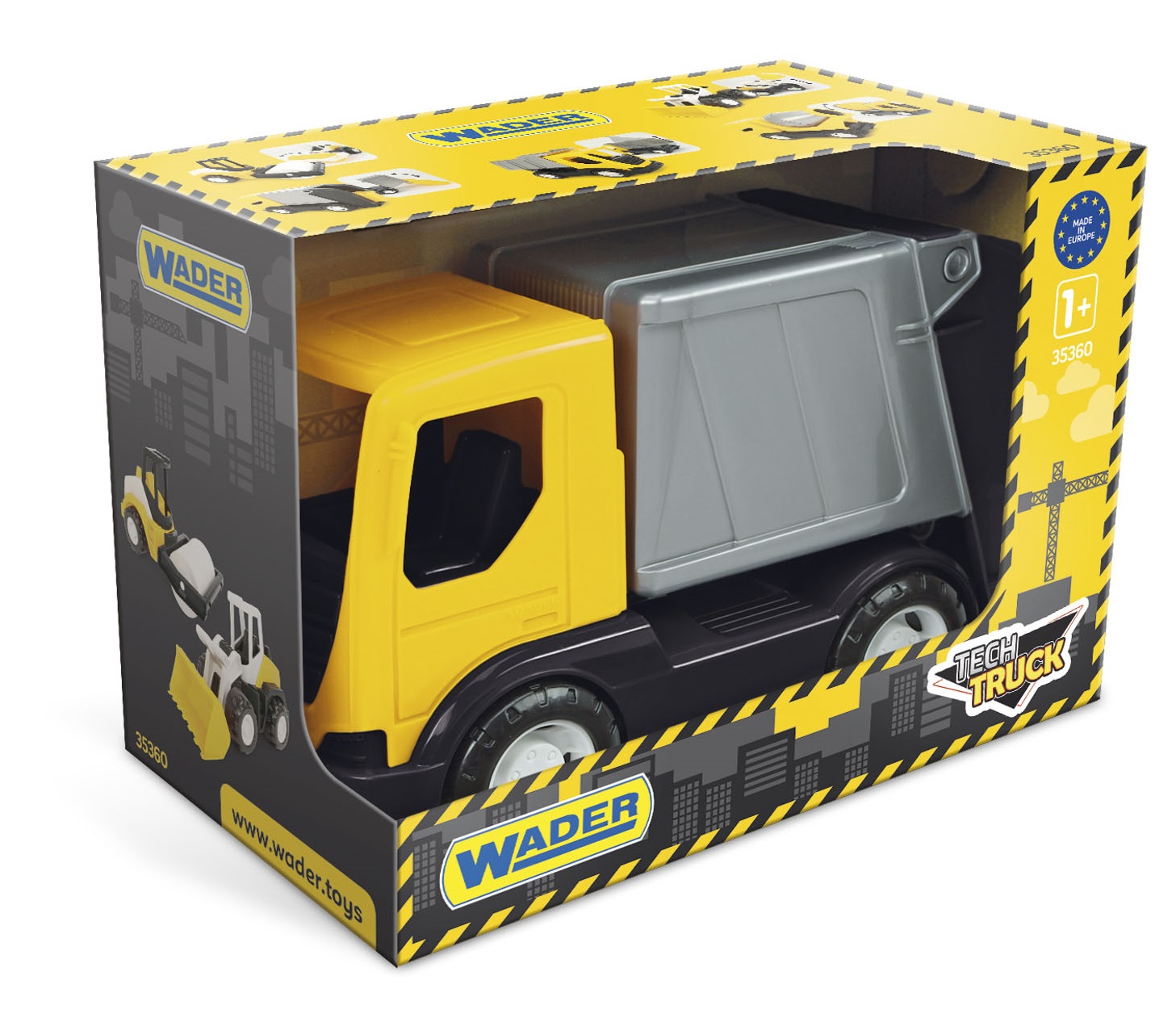 Tech Truck śmieciarka to idealna zabawka dla najmłodszych. Najnowszy pojazd z serii Tech Truck o długości 28 cm wyposażony jest w kontener na śmieci, ruchomy podnośnik umożliwiający opróżnianie kontenera oraz otwieraną tylną klapę. Śmieciarka charakteryzuje się precyzją wykonania, odwzorowaniem realnego pojazdu i ciekawą kolorystyką. Te wszystkie cechy czynią z pojazdu doskonałą zabawkę dla maluszka zarówno w domu jak i w piaskownicy. Zabawka została specjalnie zaprojektowana z myślą o najmłodszych dzieciach, tak, aby stymulować ich rozwój na wielu płaszczyznach. Ruchome elementy w pojeździe wpływają na wyobraźnię dziecka, wzbudzają jego ciekawość i zachęcają do aktywności. Podczas zabawy maluch rozwija również swoją sprawność motoryczną oraz koordynację ruchową. Całość wykonana jest z lekkiego, ale wytrzymałego tworzywa sztucznego odpornego na warunki atmosferyczne. x