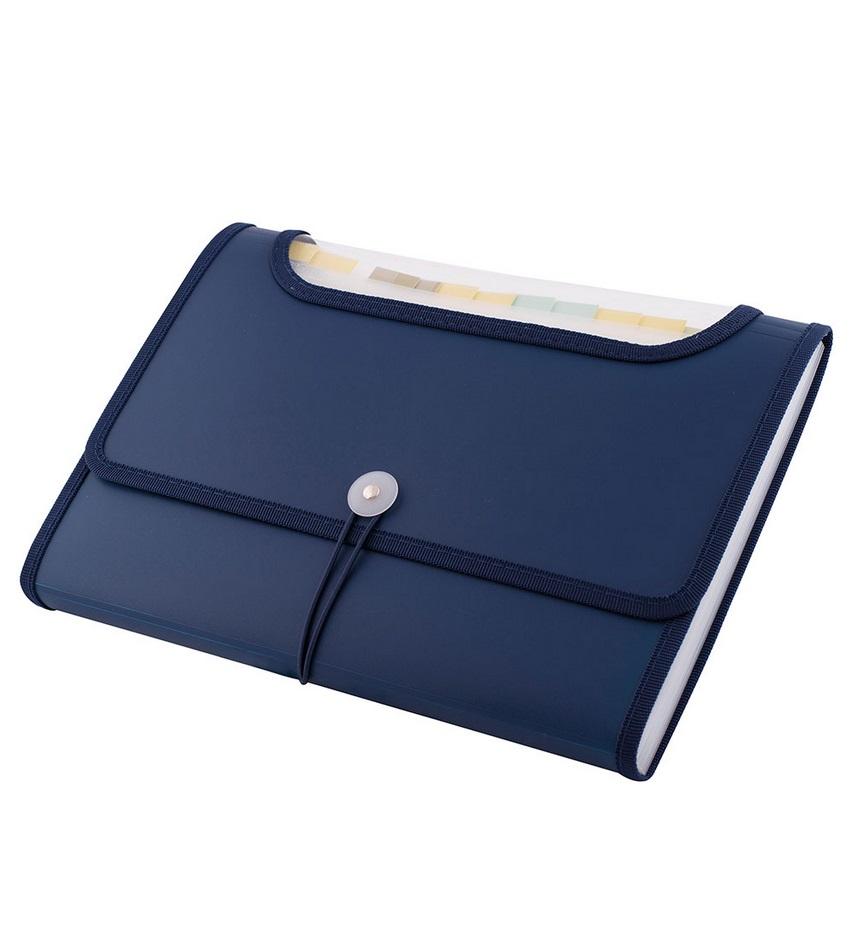 - wewnątrz posiada przegródki na dokumenty z wymiennymi etykietami do opisu zawartości - wykonana z mocnej folii PP - posiada okienko do podglądu zawartości - 12 przegródek x