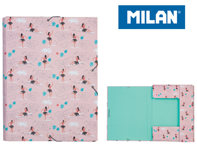 Folder w twardej oprawie zapinany na gumkę. Może pomieścić format A4 (33,5 x 26 cm) o grubości 3 cm, co odpowiada około 200 arkuszom. Matowe wykończenie z nadrukiem HULA pasującym do kolekcji. Kolor wnętrza pasuje do koloru gumki.