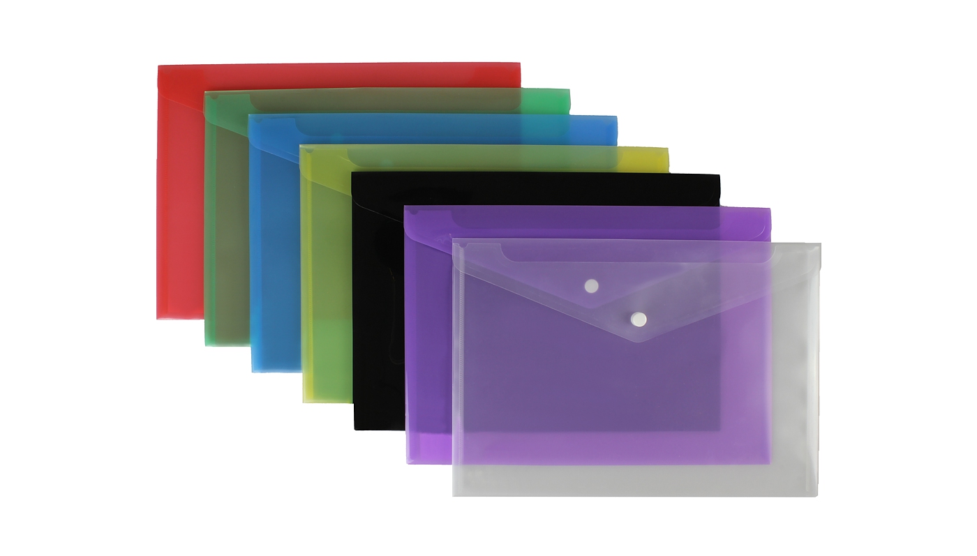 Teczka koperta wykonana z kolorowej transparentnej folii PP. Zamykana na wygodny nap zabezpieczający dokumenty przed wypadaniem. Idealna do segregowania i przechowywania dokumentów w formacie DL, akcesoriów piśmienniczych, drobnych przedmiotów, itp