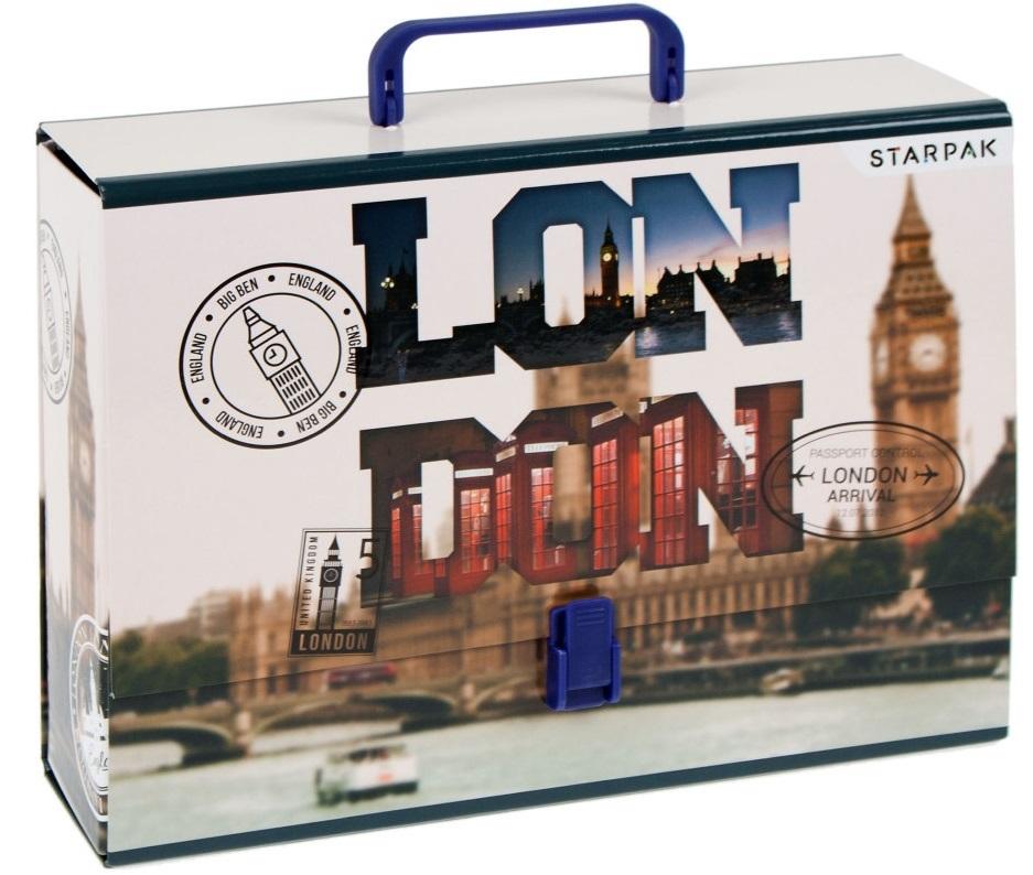 Teczka z rączką z kolekcji Starpak z grafiką przedstawiającą Londyn. Sztywna teczka wykonana z grubego, lakierowanego kartonu. Zamykana na plastikowy klips. Teczkę wyposażono w solidną rączkę. Idealnie sprawdzi się na zajęciach pozaszkolnych czy do przechowywania prac dziecka. Zapoznaj się również z innymi produktami Starpak! Produkt przeznaczony dla dzieci w wieku: 3+. Wymiary produktu: A4.