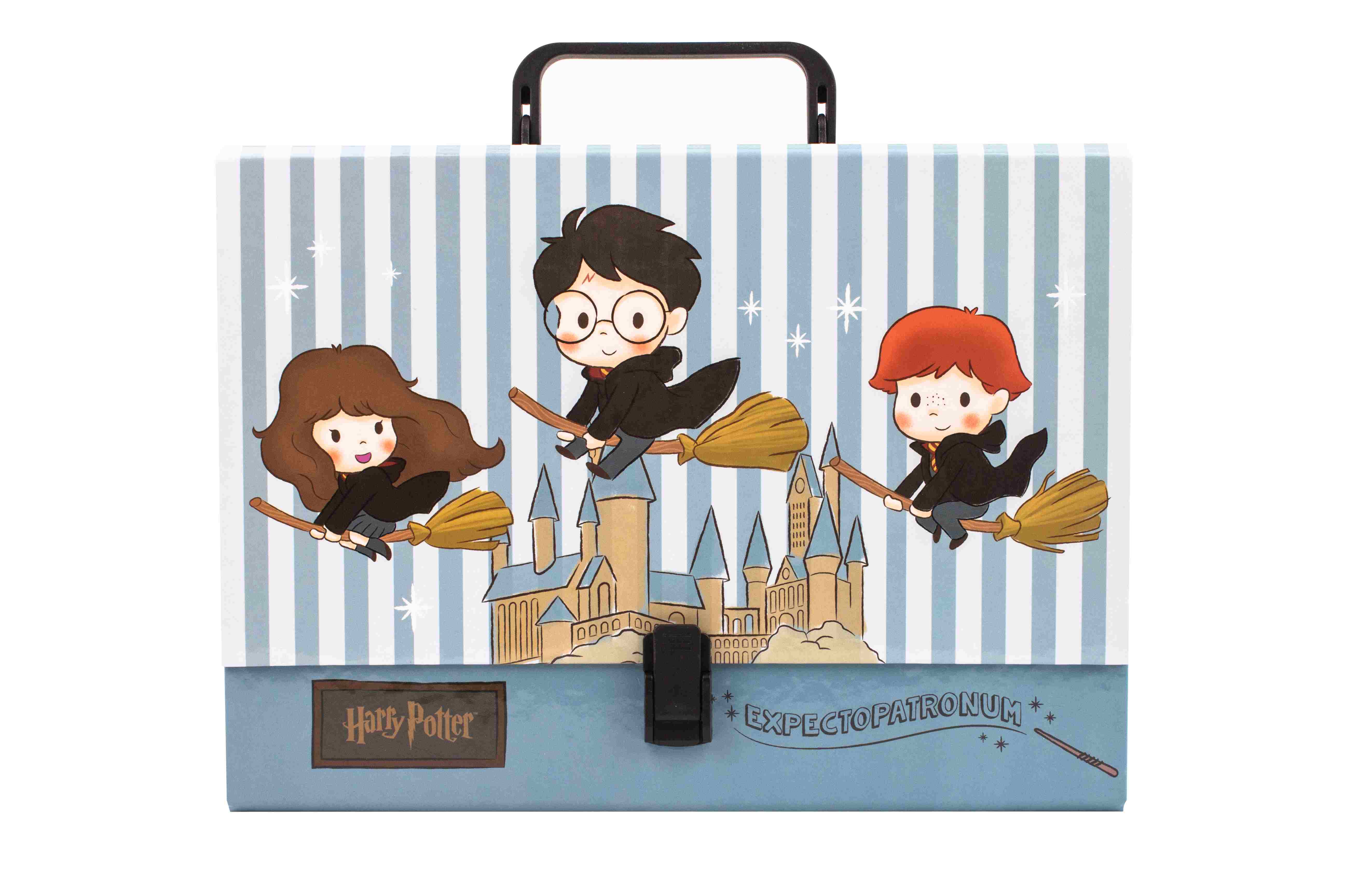 Opis produktuZasady bezpieczeństwaMix wzorów, towar wysyłany losowo. Teczka walizeczka - kartonowa/sztywna teczka z rączką, zapinana plastikowym mechanizmem z przodu. Doskonała dla przechowywania i przenoszenia zeszytów, brulionów, dokumentów, zdjęć, bloków rysunkowych, kredek i wielu innych. Kolorowa na zewnątrz, pokryta połyskową folią, wewnątrz zadruk w jednym kolorze dopasowany kolorystycznie do zewnętrznej części teczki. Motyw z serii Harry Potter