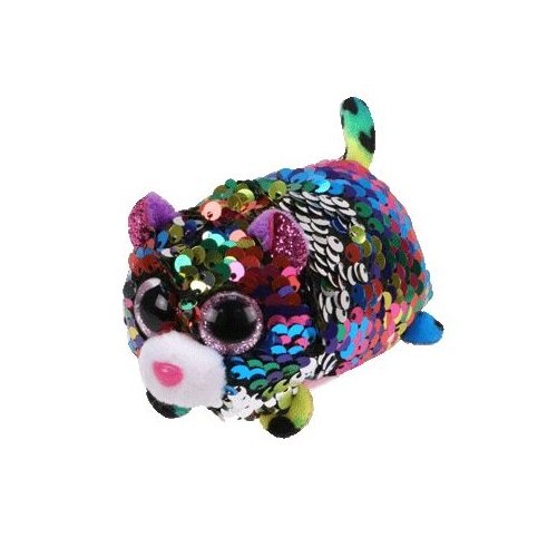 Pluszak ma błyszczące, brokatowe oczy oraz jest pokryty CEKINAMI