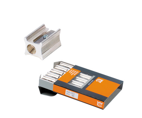 Metalowa temperówka Eisen 070MC w kształcie klina, przeciwpoślizgowa powierzchnia, niemieckie wysoko gatunkowe ostrza firmy EISEN. 20 sztuk w pudełku.